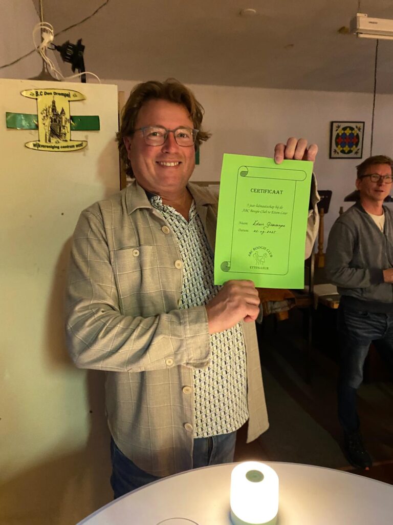 En nu ook Edwin een mooi certificaat ontvangen omdat hij 5 jaar lid is!